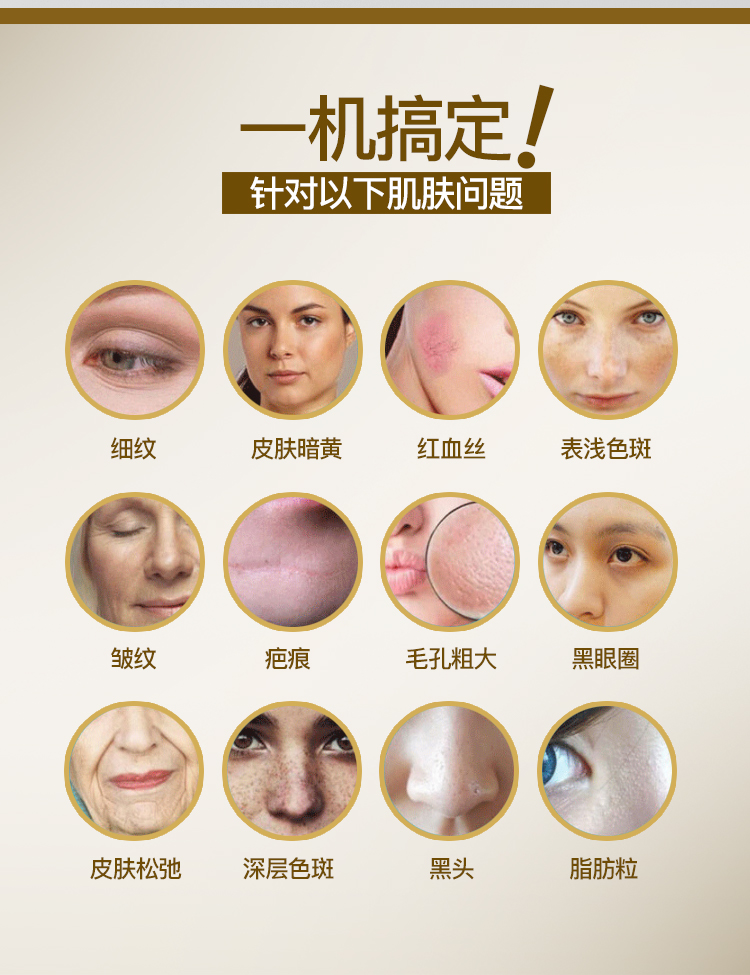 細(xì)紋,皺紋,皮膚松弛,皮膚暗黃,紅血絲,疤痕,毛孔粗大,深層色斑,黑頭